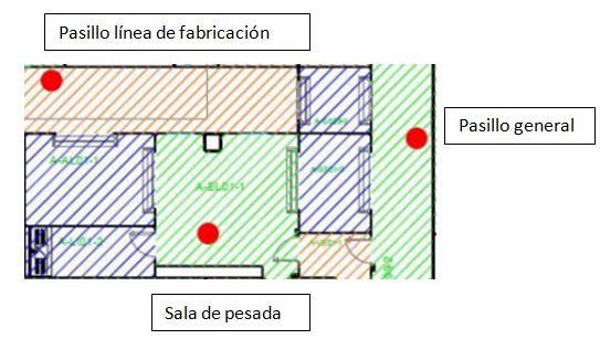 Por ejemplo, para la zona de muestreo y pesaje, se tomaron medidas tanto dentro de sala como en los dos pasillos aledaños a la misma con el fin de verificar la no contaminación a los mismos.