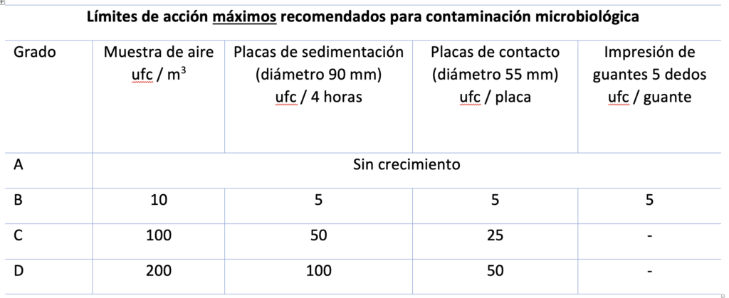 Relativo a la contaminación microbiológica, el cambio más significativo en cuanto a límites es que en Grado A no se permite ningún crecimiento durante la monitorización; hasta ahora existía el resquicio del límite “menor a 1” que servía de justificación en muchos casos para evitar realizar la investigación pertinente. Ahora se especifica en la norma, que cualquier crecimiento debe conllevar una investigación. Adicionalmente se nos especifica que los microorganismos detectados en Grados A y B deben ser identificados hasta el nivel de especie (evaluando además su potencial impacto en los lotes afectados).