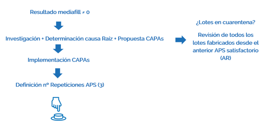 Sin embargo, el cambio más relevante y con mayor impacto en relación a la simulación del proceso aséptico está en el criterio de aceptación. Si hasta ahora teníamos un margen de una unidad contaminada en aquellas simulaciones de más de 5.000 unidades, ahora el objetivo es directamente 0 unidades contaminadas; la contaminación de una única unidad supone una simulación fallida y requerirá, por tanto, realizar investigación de la que obtengamos las causas raíces más probables, con la consiguiente implementación de acciones correctivas y la realización de las simulaciones necesarias para demostrar que el proceso vuelve a estar bajo control (aunque deja abierto el número de repeticiones, siempre en relación con herramientas de gestión de riesgos, sí nos indica que normalmente será un mínimo de tres en la validación inicial).